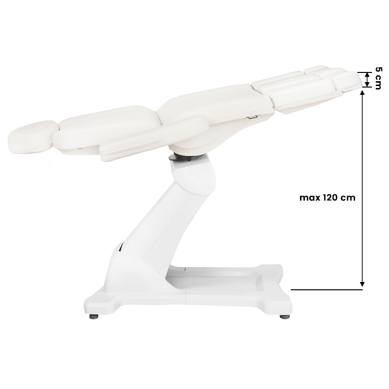 Električna kozmetička stolica idealna za kozmetičke salone i SPA salone. Omogućuje vam podešavanje stolice u 5 ravnine pomoću daljinskog upravljača .Stolica ima inovativno rješenje koje vam omogućuje rotiranje sjedala udesno i ulijevo za 90 stupnjeva. Pomoću daljinskog upravljača možete podesiti visinu stolca, nagib naslona za leđa i noge.