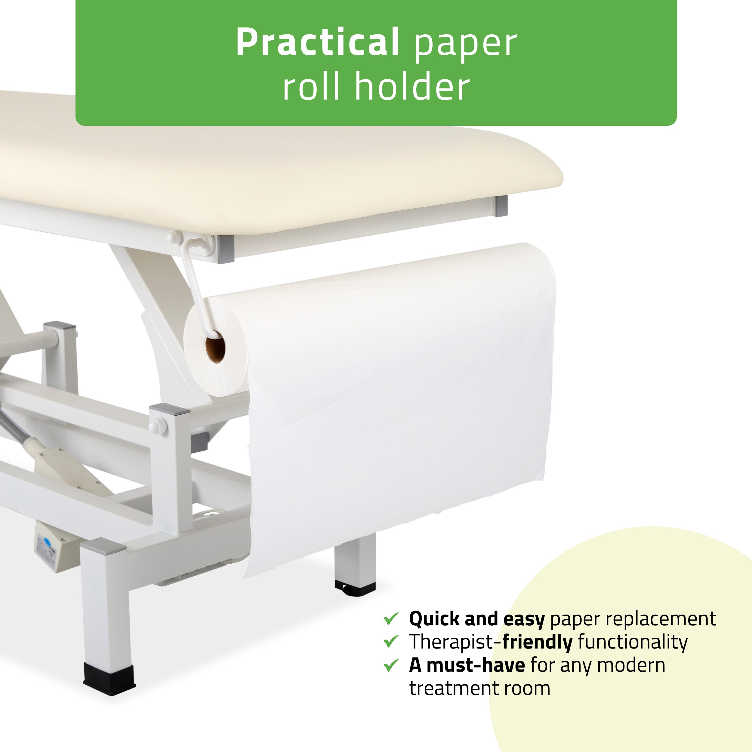 Debela pjena i električno podešavanje visine pružaju maksimalnu udobnost klijentu i olakšavaju rad terapeutu.