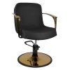 Moderna frizerska stolica jedinstvenog dizajna. Vrlo udobna i posebno profilirana kako bi klijentu omogućila udoban položaj tijekom zahvata. Podesiva u vertikalnoj ravnini. Vrlo stabilna i čvrsta. Eleganciju ove fotelje nadopunjuje okrugla baza izrađena od najkvalitetnijeg INOX čelika