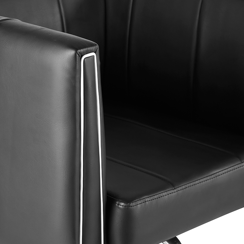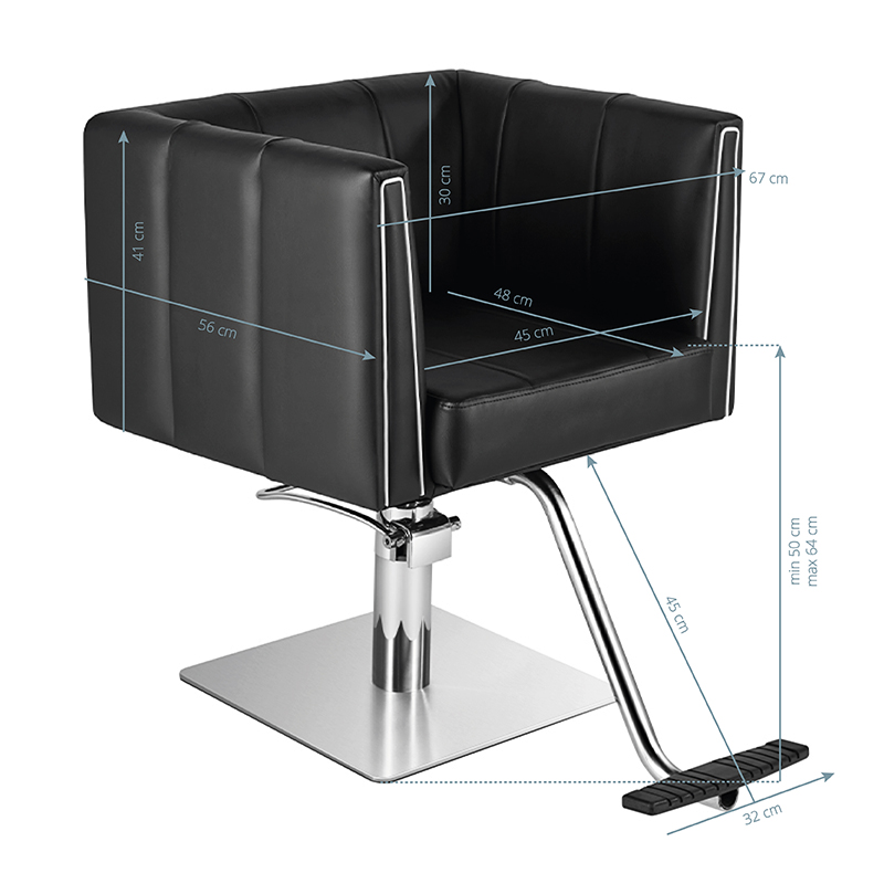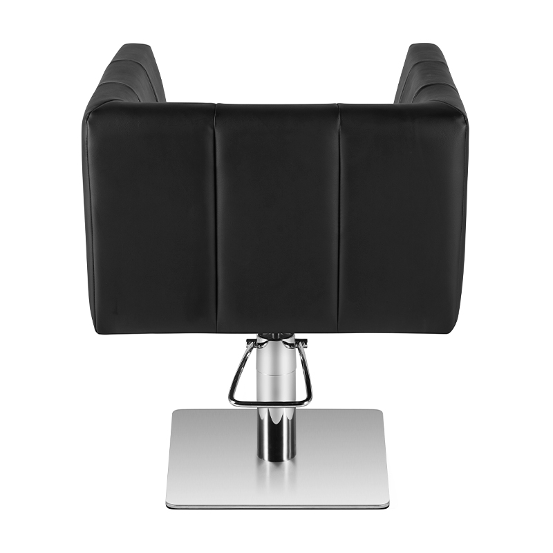 Moderna frizerska stolica jedinstvenog dizajna. Vrlo udobna i posebno profilirana kako bi klijentu omogućila udoban položaj tijekom zahvata. Podesiva u vertikalnoj ravnini. Vrlo stabilna i čvrsta. Eleganciju ove fotelje nadopunjuje kvadratna baza izrađena od najkvalitetnijeg INOX čelika