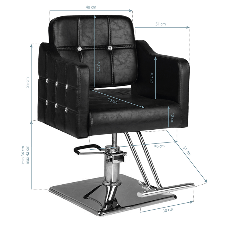 Moderna frizerska stolica jedinstvenog dizajna. Vrlo udobna i posebno profilirana kako bi klijentu omogućila udoban položaj tijekom zahvata. Podesiva u vertikalnoj ravnini i podesivi naslon za glavu. Vrlo stabilna i čvrsta. Eleganciju ove fotelje nadopunjuje kvadratna baza izrađena od najkvalitetnijeg INOX čelika