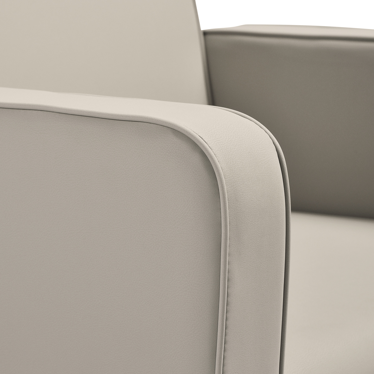 Fotelja geometrijskog oblika s meko zaobljenim rubovima spaja jednostavnost i udobnost u modernom izdanju. Kvadratno sjedalo i nasloni za ruke stvaraju skladnu cjelinu, osiguravajući udoban položaj tijekom rada. Naslon s optimalnim kutom nagiba podupire pravilno držanje tijela i omogućuje potpunu opuštenost. Presvlaka od visokokvalitetne sintetičke kože u nijansama sive i bež boje otporna je na trošenje i jednostavna za čišćenje. Suvremeni dizajn i geometrijski oblik naglašavaju eleganciju i stil, savršeno se uklapajući u izgled salona.