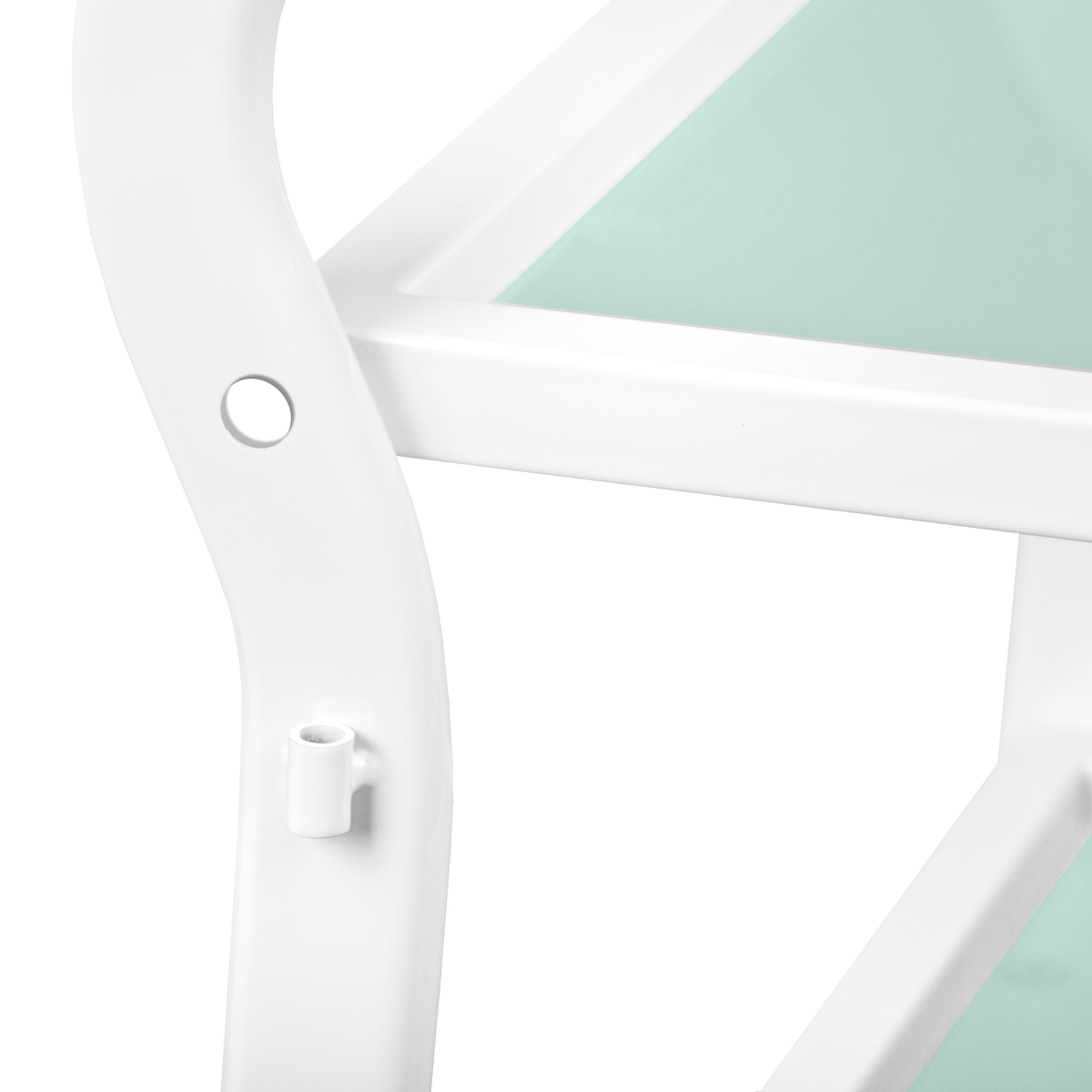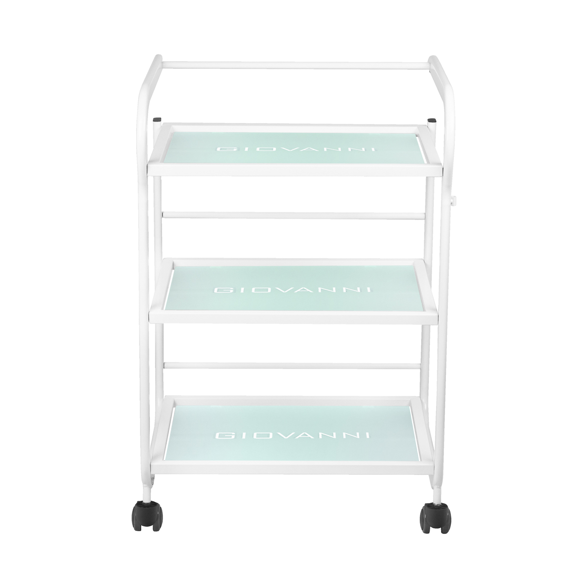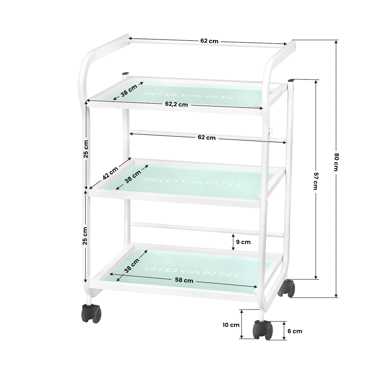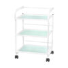 Kozmetička kolica za odlaganje kozmetičkog pribora i uređaja na kotačima. Kolica imaju tri staklene police.