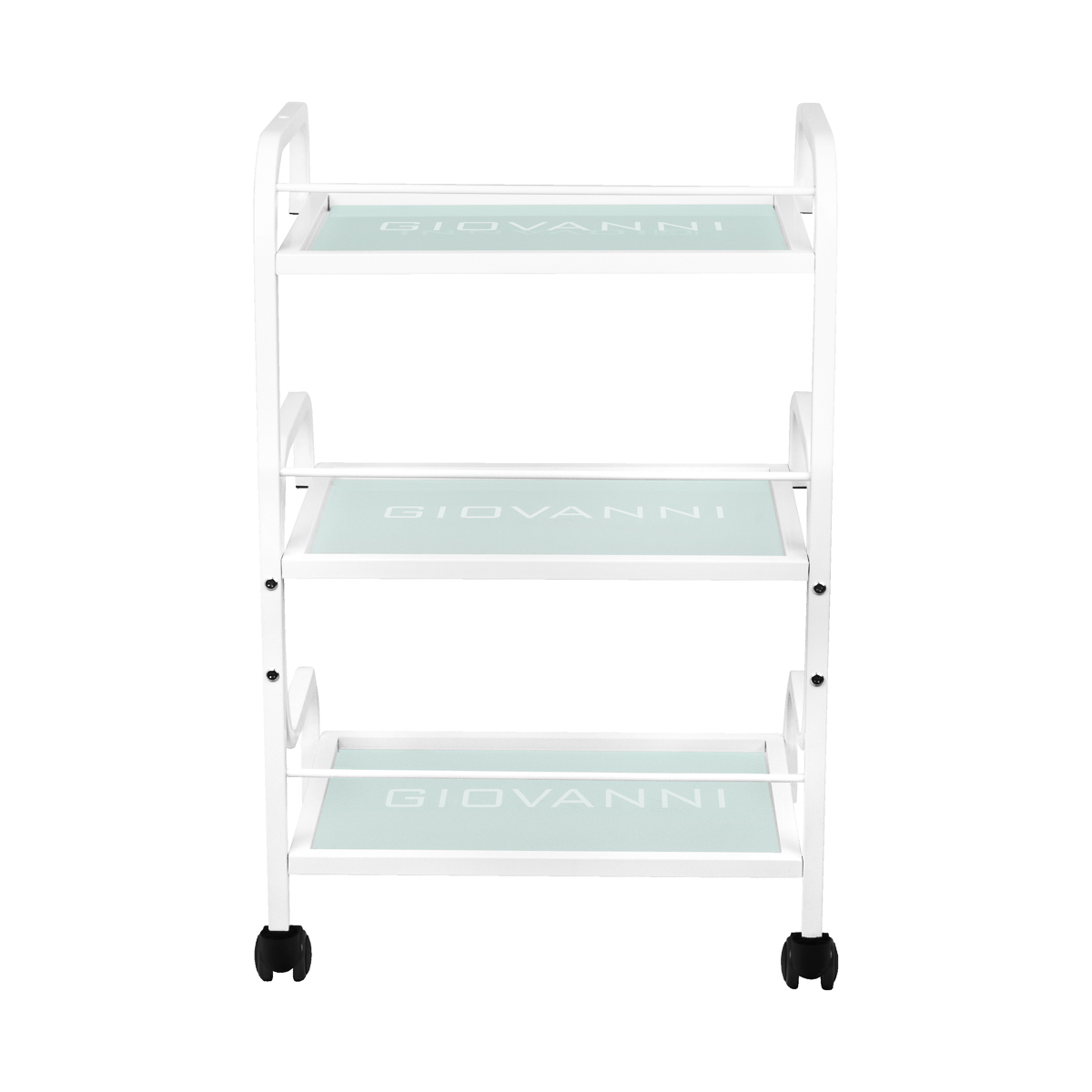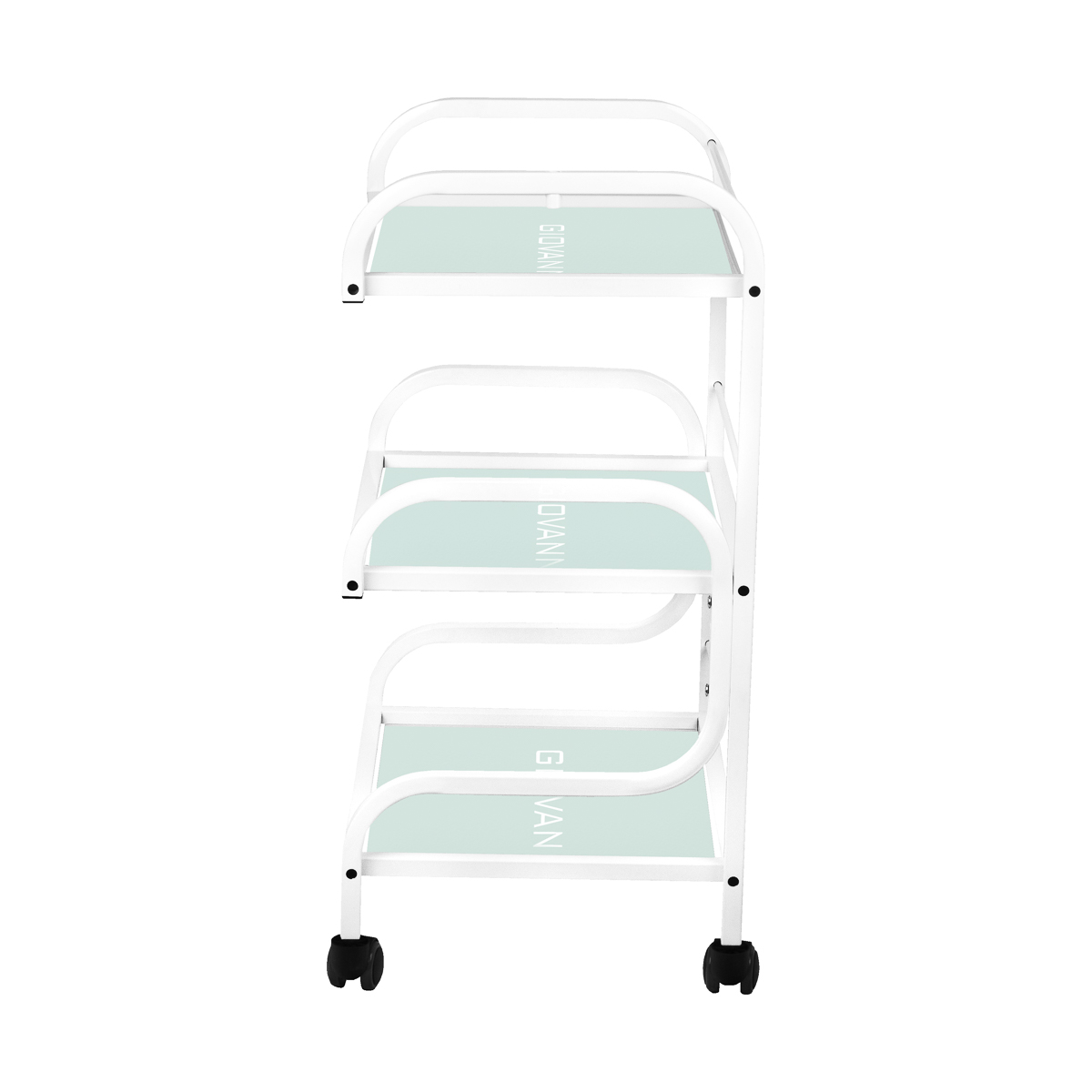 Kozmetička kolica za odlaganje kozmetičkog pribora i uređaja na kotačima. Kolica imaju tri staklene police.