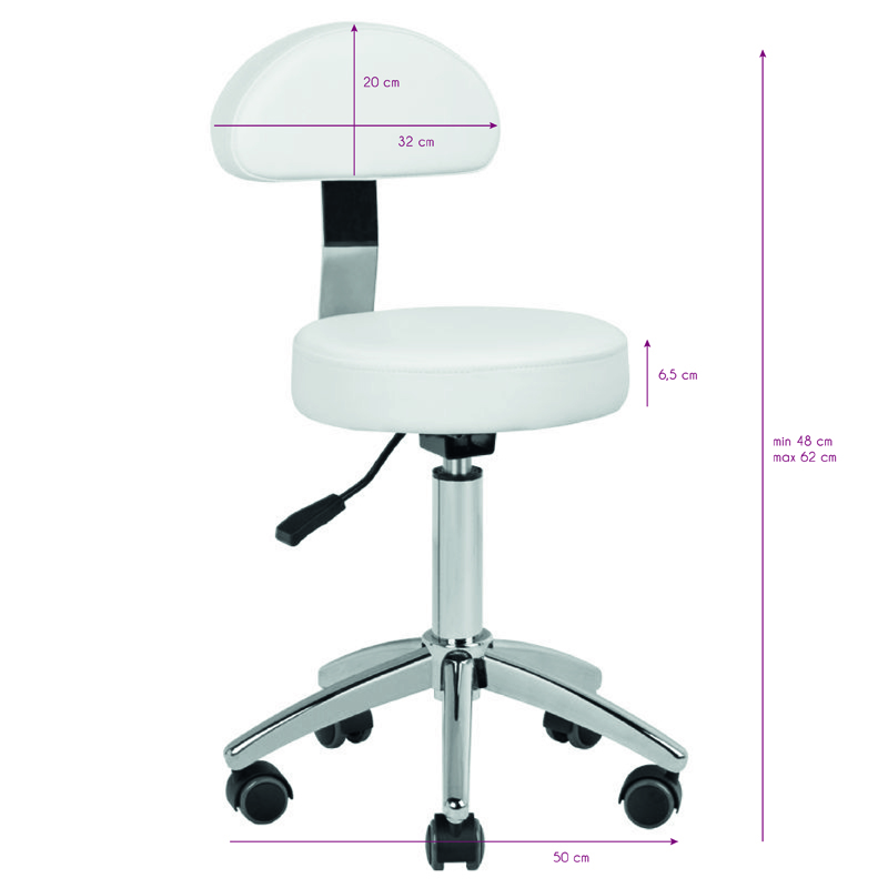 Udobna kozmetička stolica sa gumenim kotačima, naslonom koji se može skinuti, u crnoj boji, neizostavan dio svakog kozmetičkog salona.
