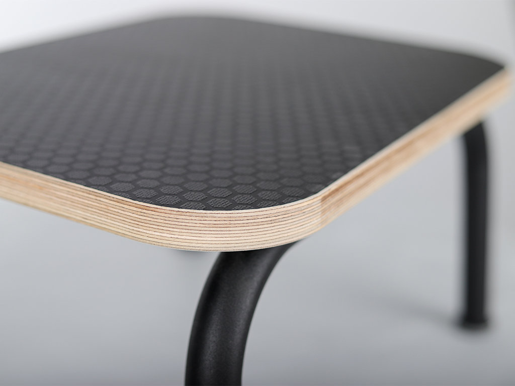 Izrađen od čvrstog metalnog okvira, prekrivenog crnim lakom i izdržljive drvene ploče s protukliznom površinom. Gumene nožice sprječavaju pomicanje stepenice. Stepenica je neizostavan element opreme za fizioterapiju ili masažu. Olakšava siguran ulazak i izlazak s kauča.