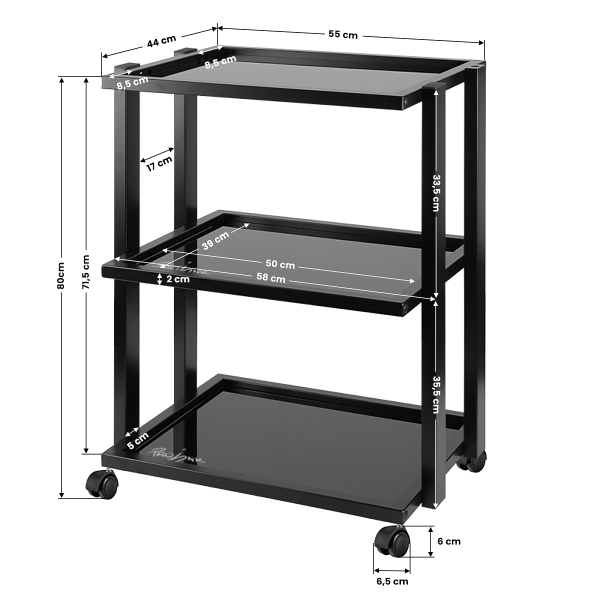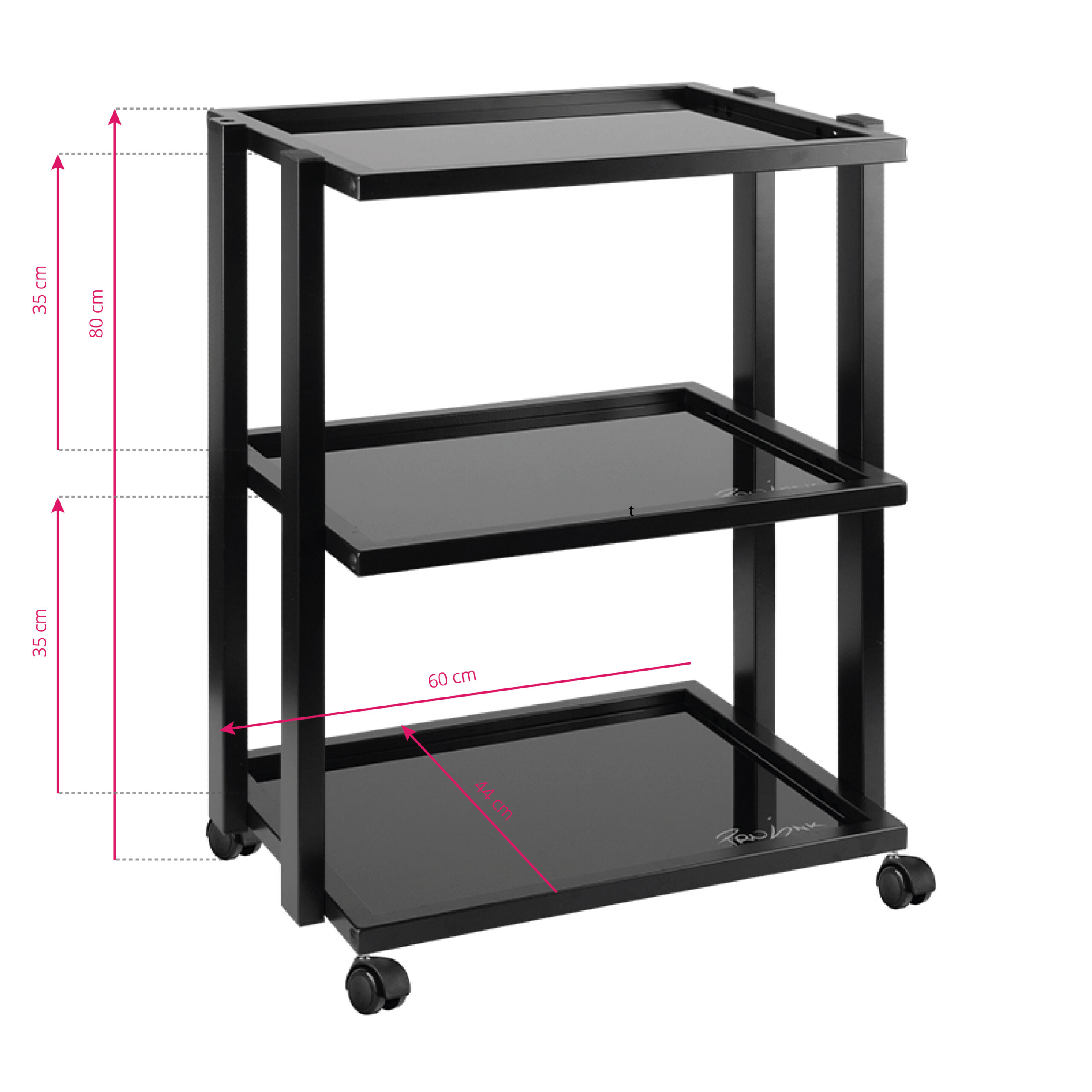 Pomoćna kolica za odlaganje Pro Ink neizostavan su dio tattoo studia. Napravljena su od čvrste čelične konstrukcije, imaju tri staklene police i držač za lampu.