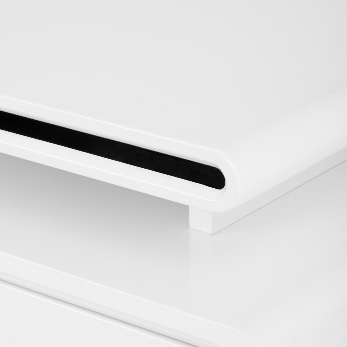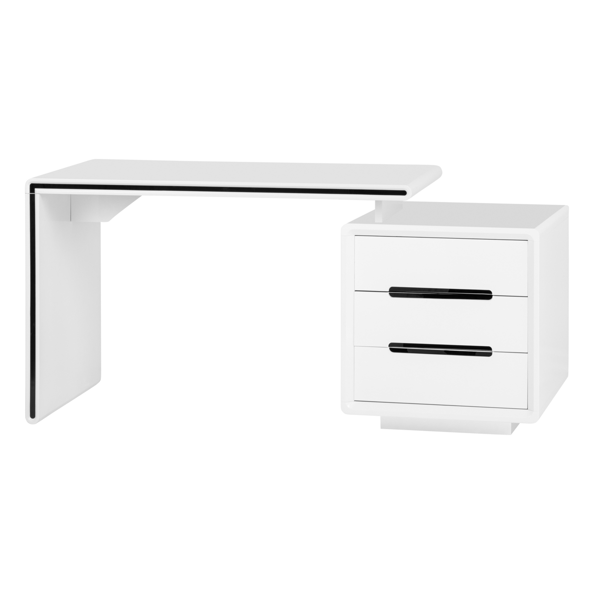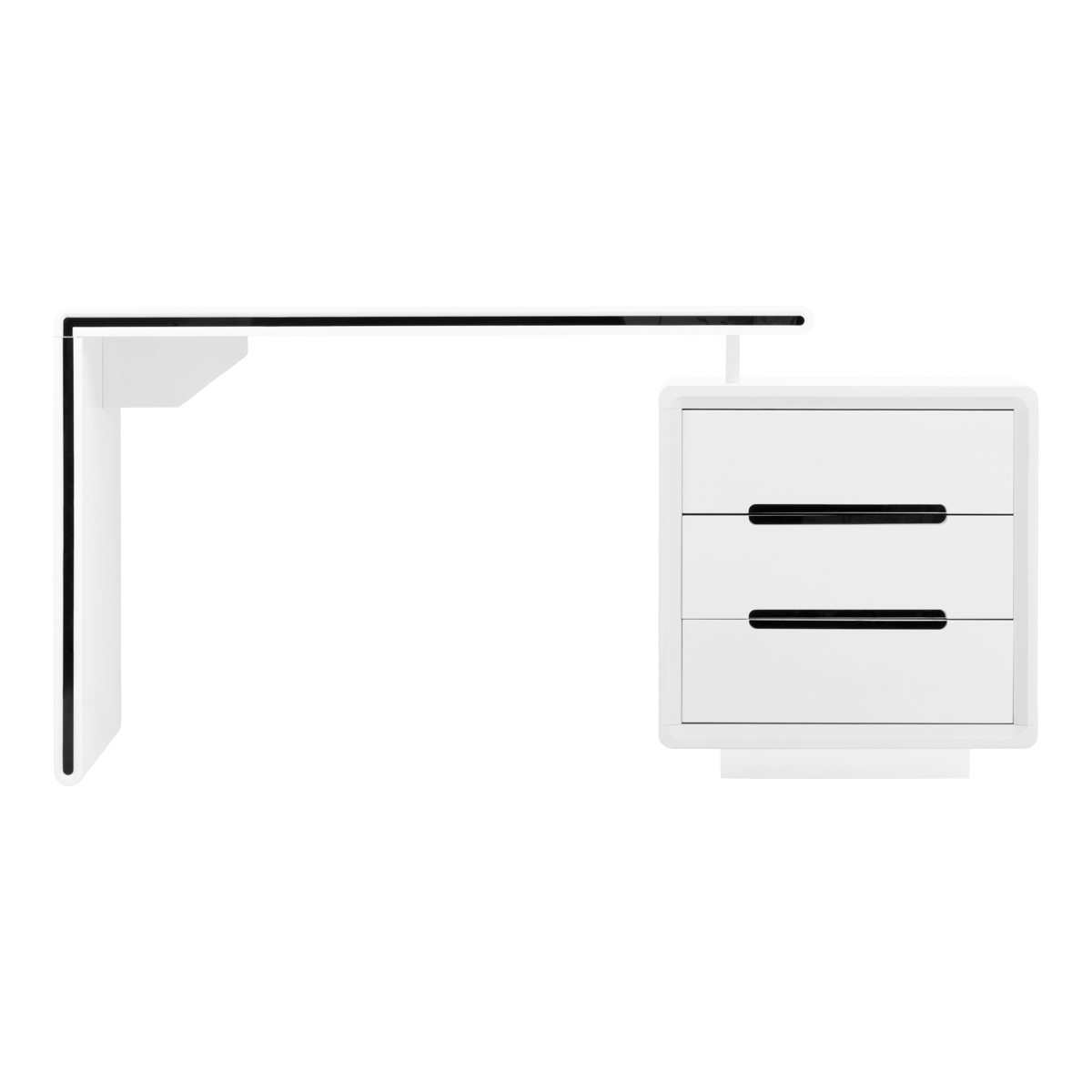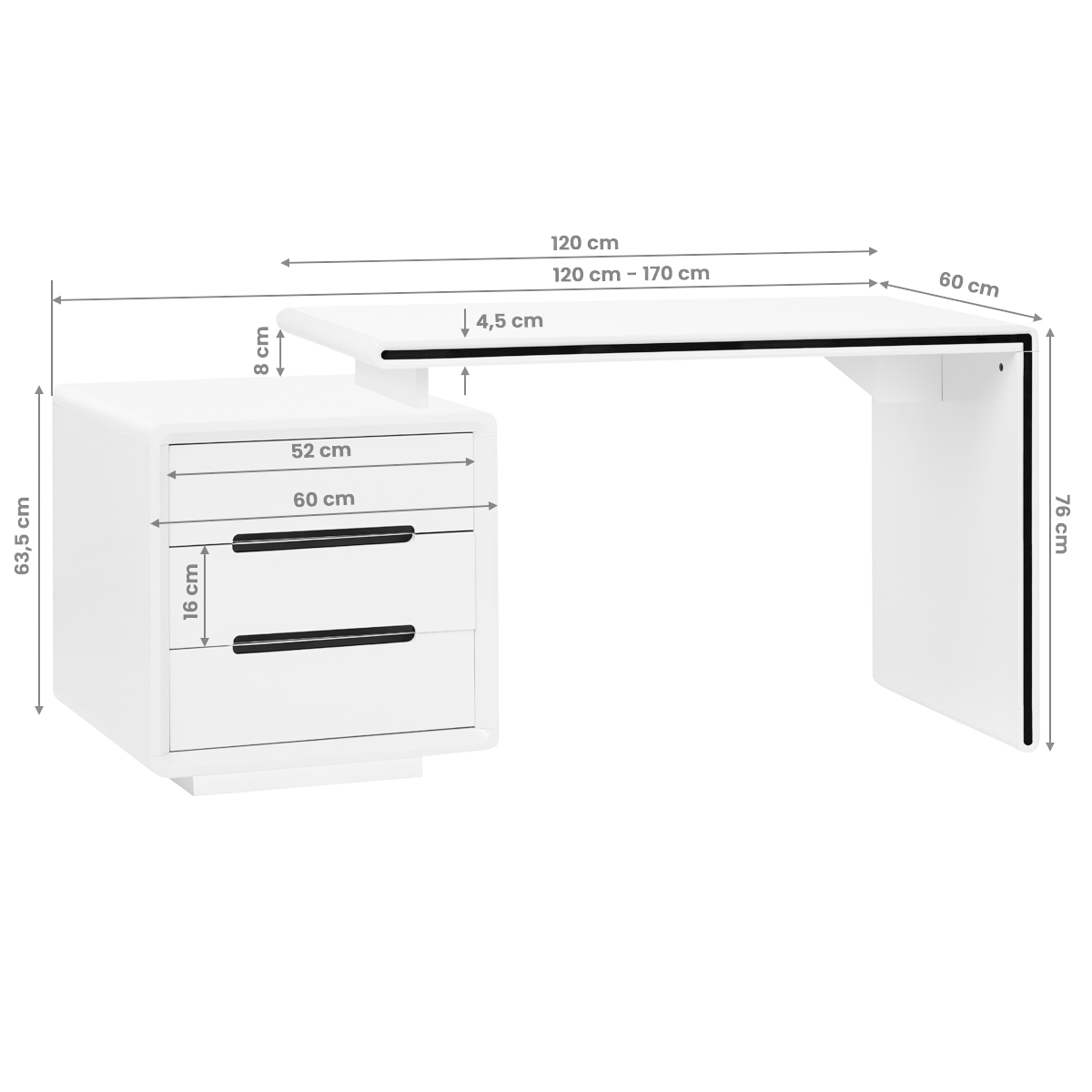 Funkcionalan i praktičan stol koji će se uklopiti u svaki ambijent. Pored kozmetičke namjene, stol se može koristiti i kao uredski stol, a njegov dizajn omogućit će vam da pravilno i transparentno organizirate svoju radnu stanicu i stavite sve potrebne dodatke nadohvat ruke. Ormarić stola se može, ovisno o potrebama, pomicati u pravoj liniji desno/lijevo i unutra/vani, mijenjajući veličinu stola. Izrađen je od medijapana visokog sjaja dok bijela boja i sjajna površina daju cjelini elegantan izgled.