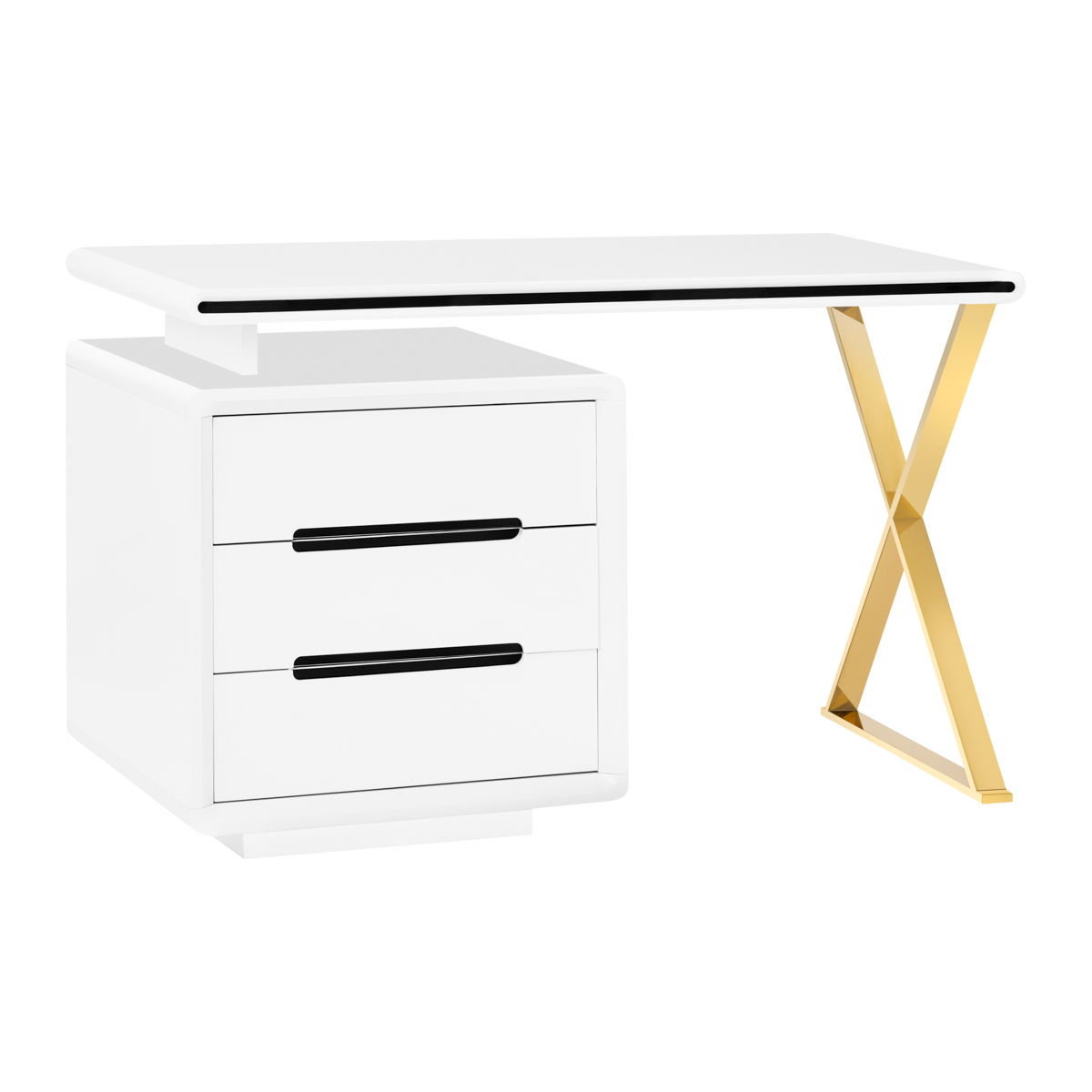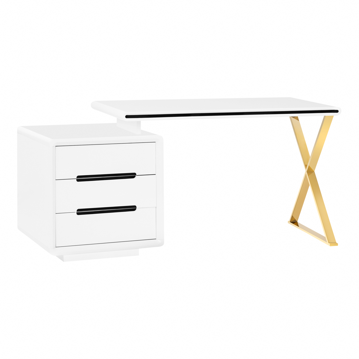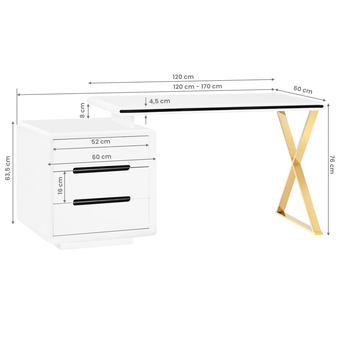 Funkcionalan i praktičan stol koji će se uklopiti u svaki ambijent. Pored kozmetičke namjene, stol se može koristiti i kao uredski stol, a njegov dizajn omogućit će vam da pravilno i transparentno organizirate svoju radnu stanicu i stavite sve potrebne dodatke nadohvat ruke. Ormarić stola se može, ovisno o potrebama, pomicati u pravoj liniji desno/lijevo i unutra/vani, mijenjajući veličinu stola. Izrađen je od medijapana visokog sjaja dok bijela boja i sjajna površina daju cjelini elegantan izgled.