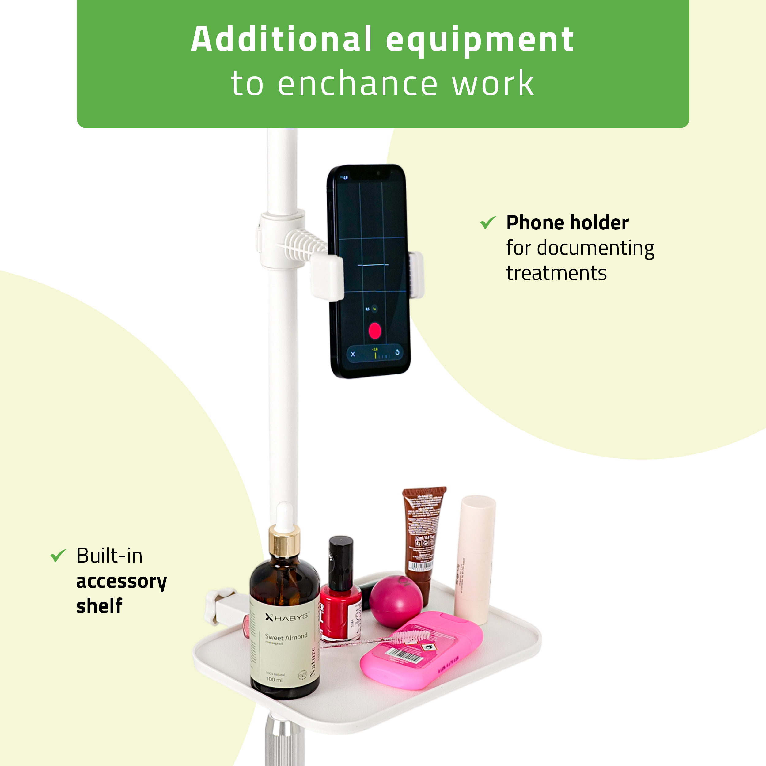 • Ugrađeni držač za mobitel – idealan za snimanje sadržaja, edukacije i dokumentiranje tretmana.